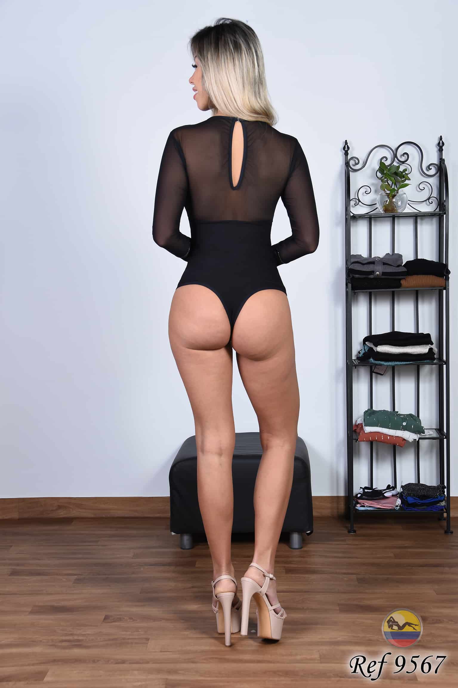 Body Reductor de abdomen con mangas largas de encaje transparente, que aportan un toque femenino,lleva una abertura en el escote y un acabado de encaje en la espalda, lo que es una prenda perfecta tanto para uso diario como para ocasiones especiales,color negro.