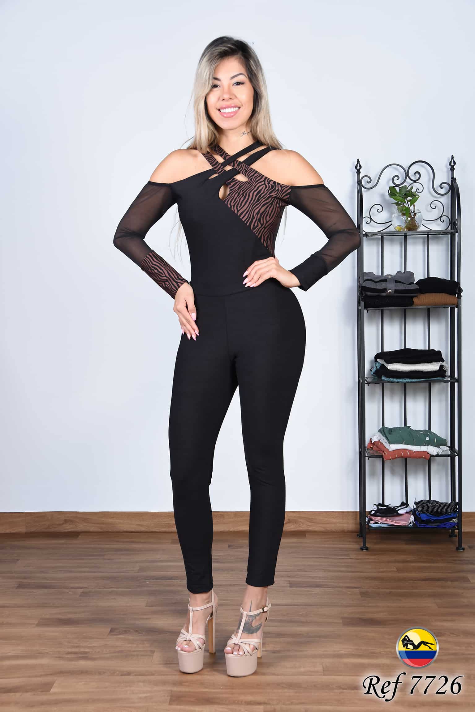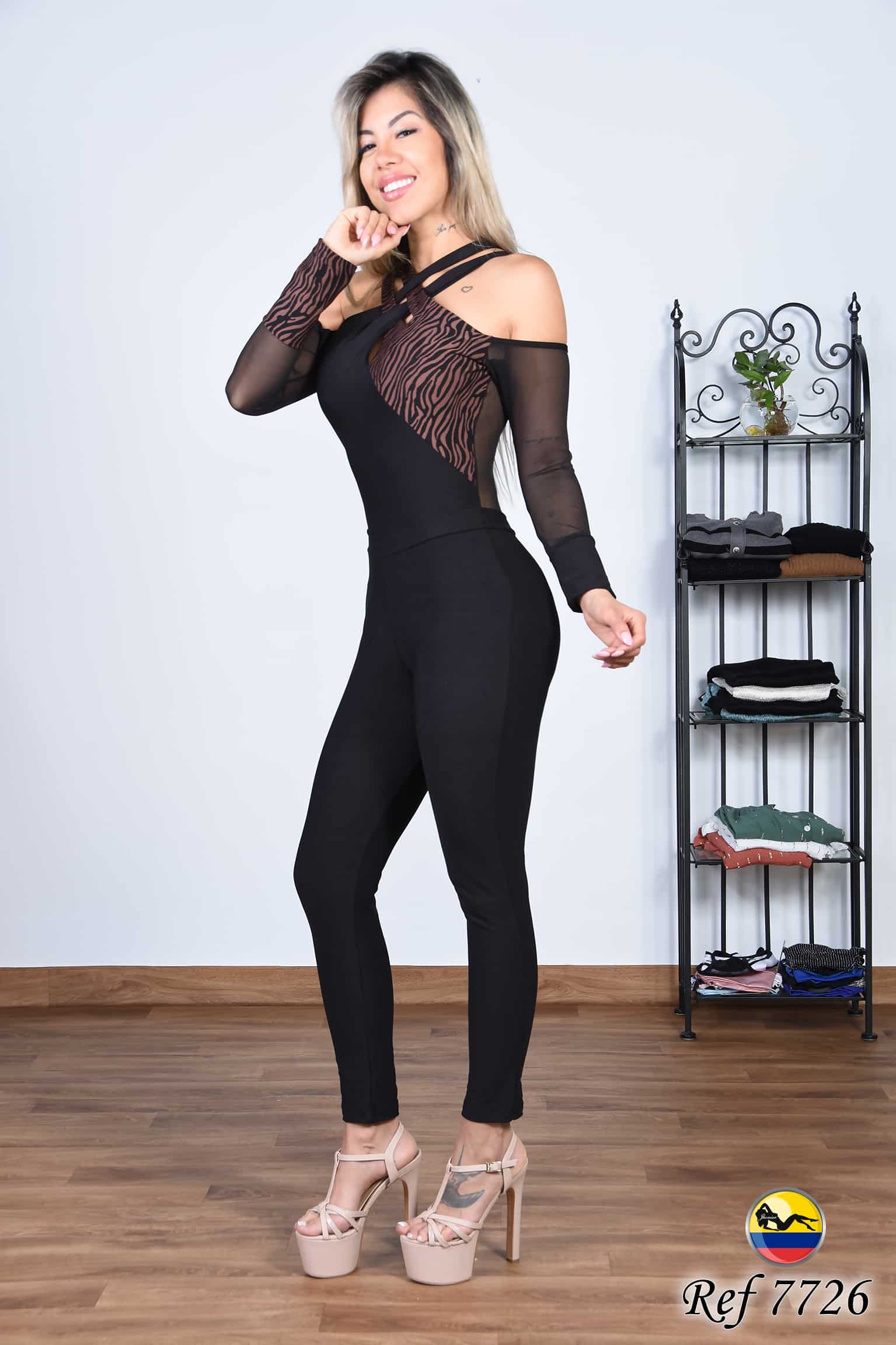 Este enterizo largo está diseñado para destacar tu estilo,su color animal print y negro Su diseño único mezcla texturas y cortes que realzan la figura y aportan un look moderno ideal para cualquier ocasión especial.